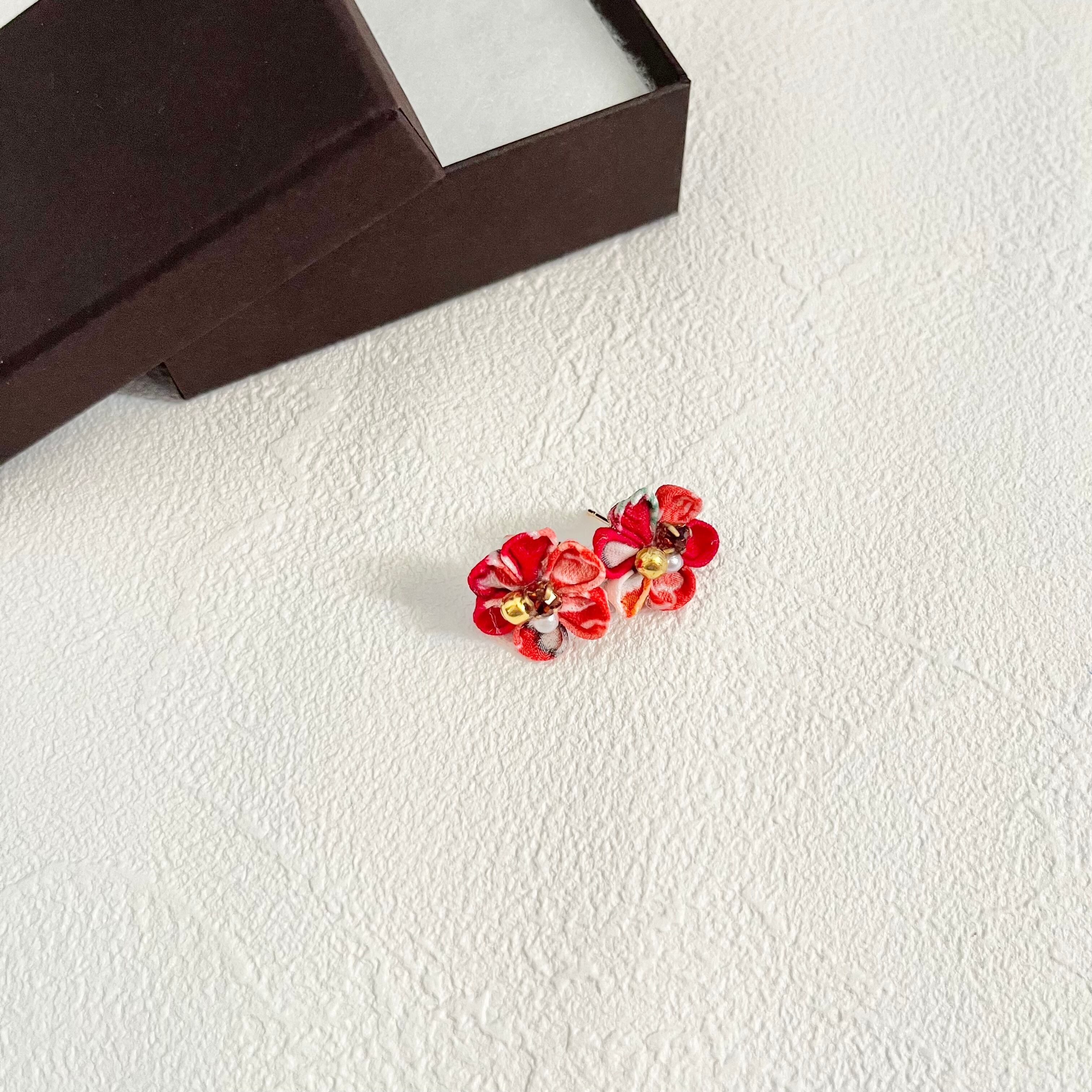 美しい友禅古典柄の綸子布を使用した「結花〜ゆいか〜」(ピアス)