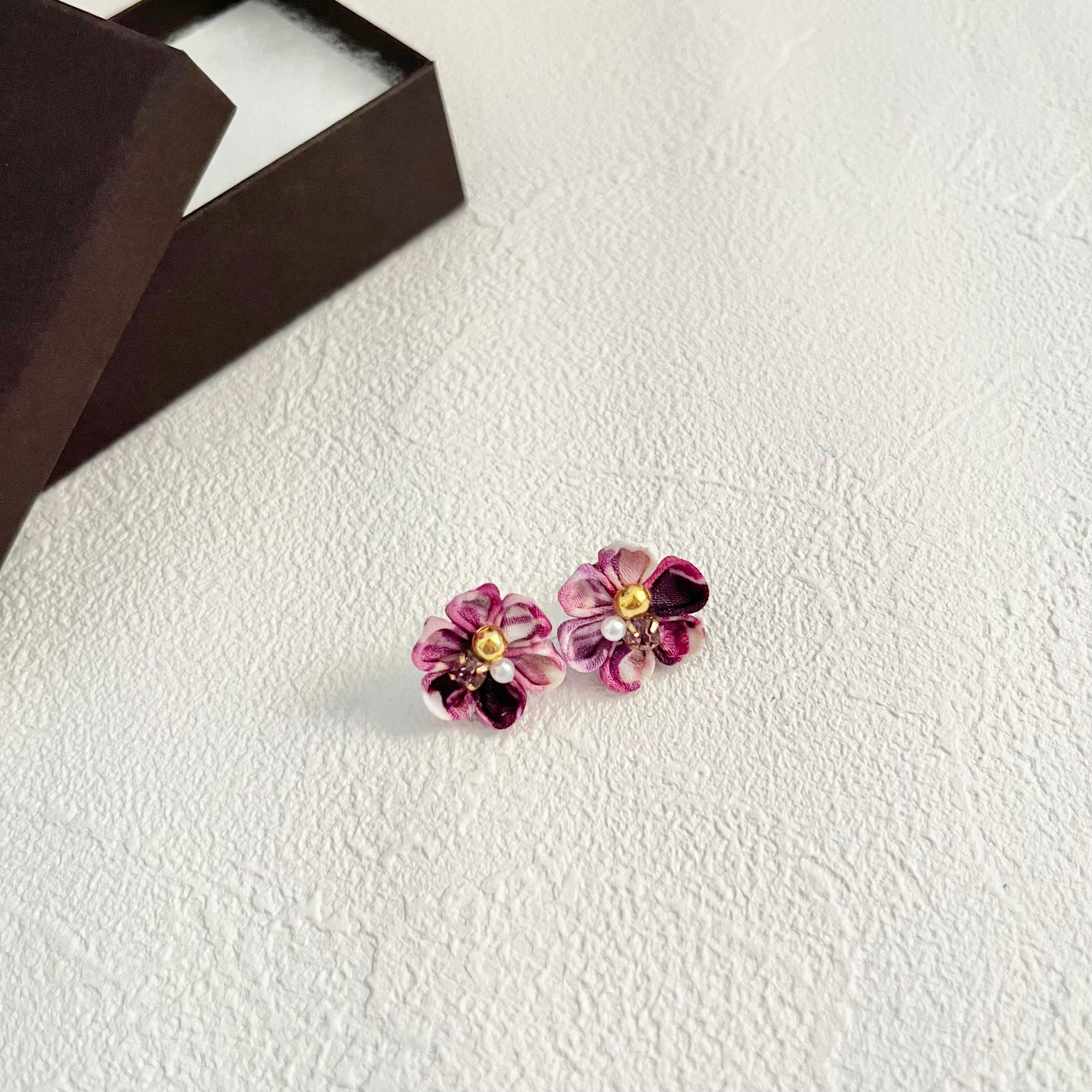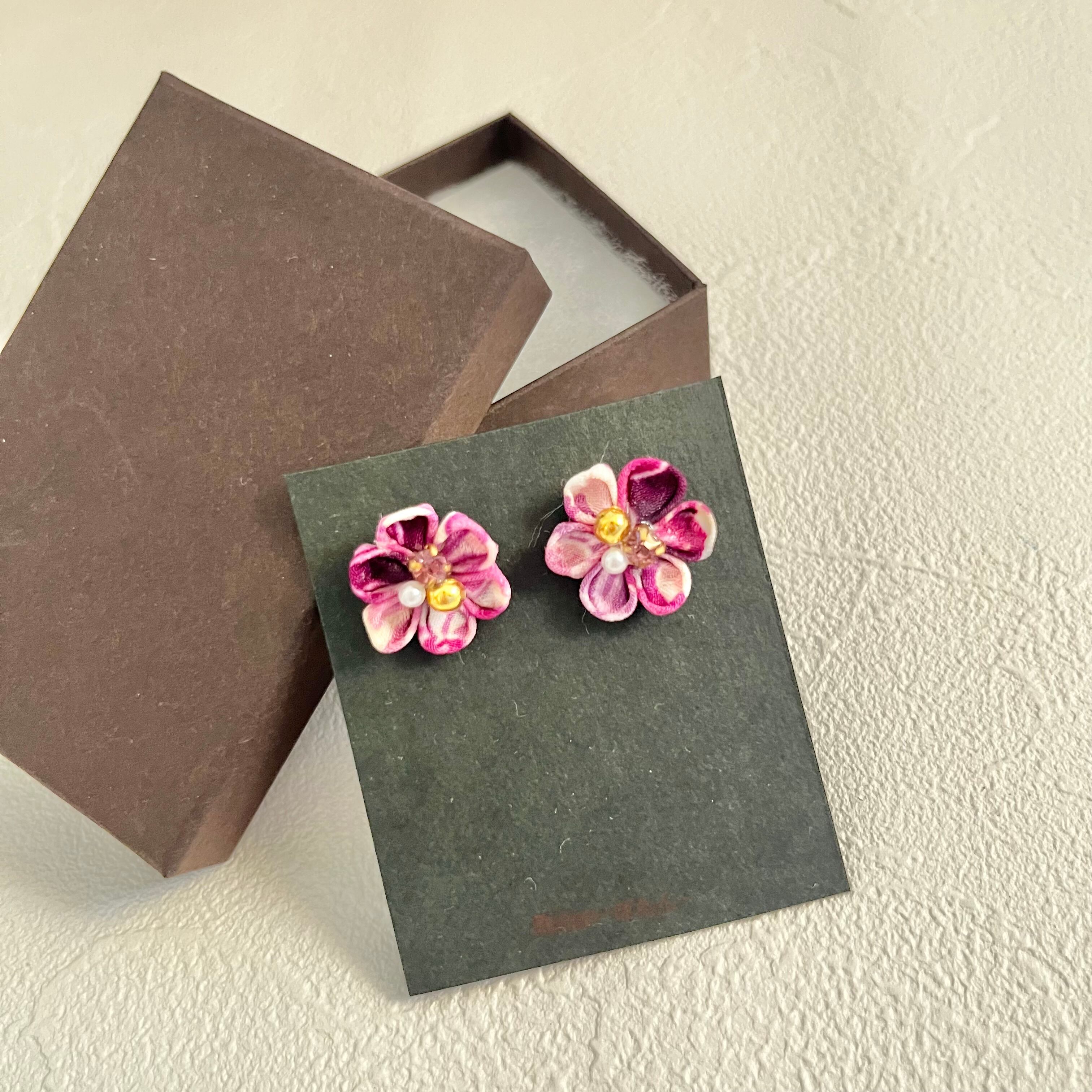 美しい友禅古典柄の綸子布を使用した「結花〜ゆいか〜」(ピアス)